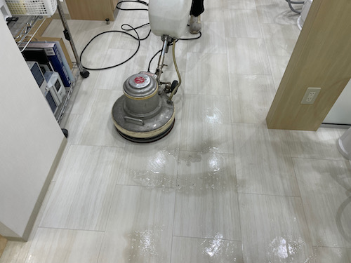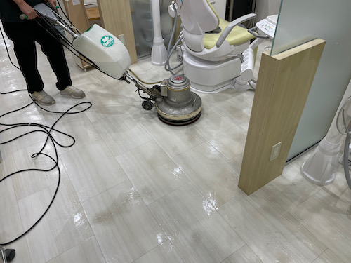 板橋区の歯科クリニック様の床ワックス洗浄作業です。