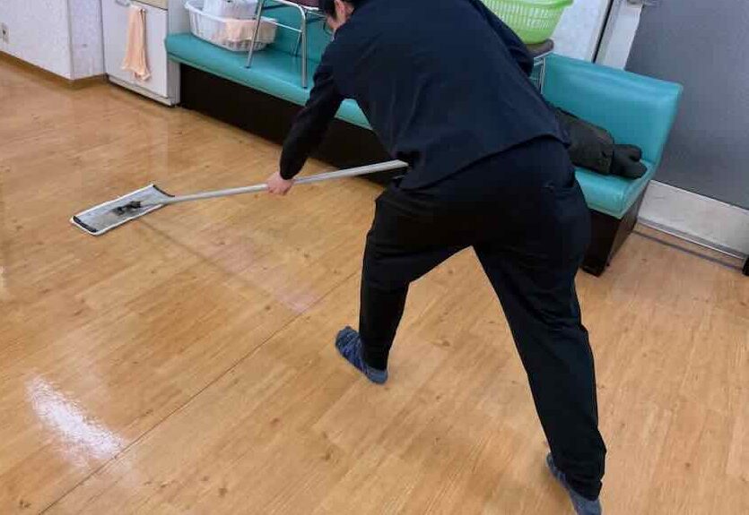クリニック様の床洗浄作業の現場紹介です。